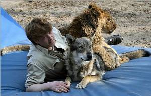 Auch wenn das Tier für eine Produktion im Grunde nichts Spezielles lernen soll, d.h. also wenn es z.B. einfach nur mit im Bild sein soll, muss es dennoch darauf vorbereitet werden. Das Training von Filmtieren beginnt immer mit der Förderung des Selbstvertrauens, der Gelassenheit und der Offenheit sich auf Neues einzulassen. Am Set wird das Tier mit vielen ungewöhnlichen Sinneseindrücken konfrontriert. Es soll sich angesichts von Troubel, vielen fremden Menschen und fremden Umgebungen nicht verunsichern lassen. Daher beginnen wir nach Möglichkeit bereits beim Jungtier, es vorsichtig und geduldig an möglichst viele Situationen (u.a. Auto fahren) zu gewöhnen. oben |